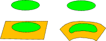 D. Matter as topology Since many sheetedness is encountered in all length scales a very attractive manner to reinterpret our visual experience about world suggests itself. Material objects having macroscopic boundaries correspond actually to sheets of 3-space and 3-space literally ends at the boundary of object. The 3-space outside the object corresponds to the 'lower' space-time sheet. Actually we can see this wild 3-topology every moment!! The following 2-dimensional illustration should make clear what the generalization really means. Fig. 18. Matter as topology |